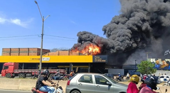 Um incêndio atingiu uma loja de revenda de pneus na BR-316, na zona Sul de Teresina, na manhã desta quinta-feira