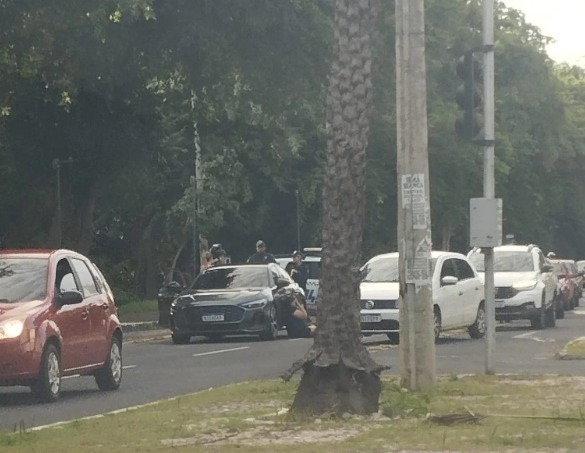 Um acidente envolvendo um carro e uma motocicleta foi registrado na manhã desta terça‑feira (14) na Avenida Marechal Castelo Branco,