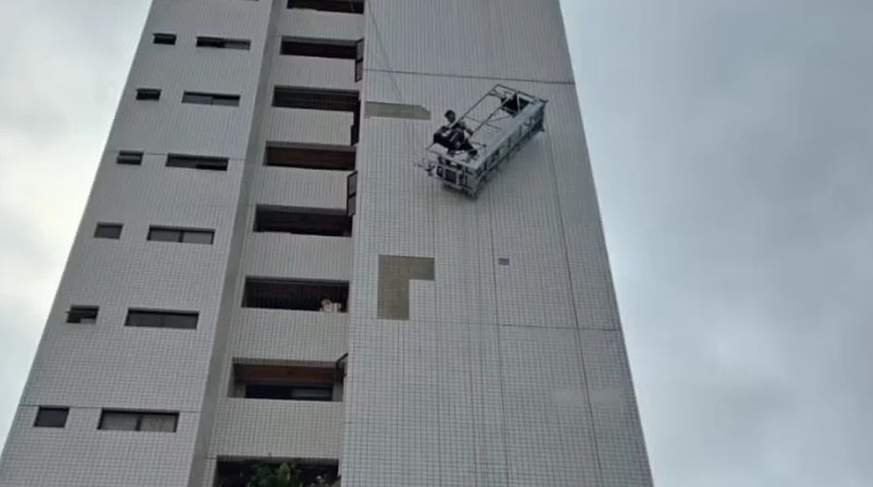 Uma falha em um dos cabos de sustentação provocou um incidente durante um serviço de manutenção em um prédio localizado