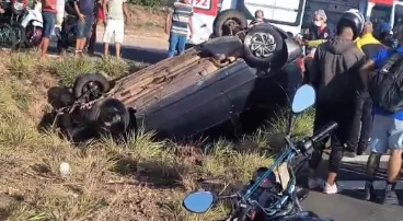 Três pessoas ficaram feridas após um carro capotar, na manhã desta terça-feira (28), na BR-316, zona Sul de Teresina (PI).