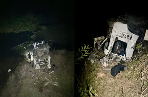 Um caminhão caiu da cabeceira de uma ponte na BR-407, na localidade Maria Preta, entre Patos do Piauí e Jaicós,