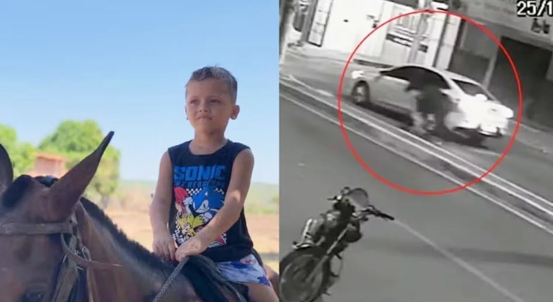 O menino Nicollas, de sete anos, arrastado por um cavalo, em Pedro II (PI), recebeu alta médica nesta segunda-feira (5).