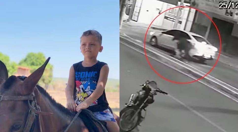 Conforme a PM, o avô afirmou que Nicollas conseguiu se segurar por alguns metros, mas caiu e foi arrastado. Um carro que seguia o animal conseguiu pará-lo.