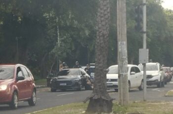 Motoristas e entregadores de aplicativo realizam, na manhã desta terça‑feira (14), uma mobilização em Teresina (PI) como parte de uma